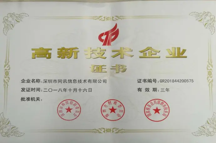 Certified as National High-Tech Enterprise